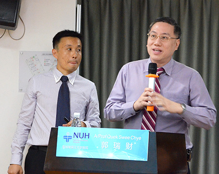 在互动与交流环节,来自省内的医疗同行,就“JCi要求患者身份识别需同质化,但新加坡国大医院却采用了两种方式,国大医院是如何做到符合JCI要求的;如何对病房、手术室进行有序管理;如何对需反复住院的肿瘤患者进行回访;如何提高医疗质量”等话题与NUH专家进行交流、研讨、取经,现场气氛热烈。