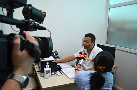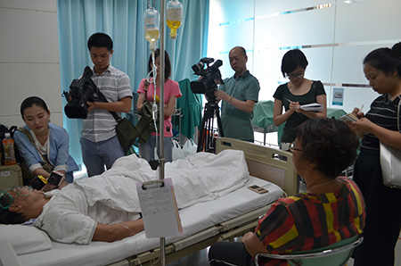 媒体在采访急诊科吴振辉医生和邓老伯
