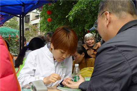3月22日上午,(中新合资)广州圣丹福医院6名义工来到元岗村下元岗广场,联合元岗村家庭综合服务中心的社工们开展义诊活动,为社区居民免费进行健康讲座、疾病咨询、健康宣传等服务,受到社区居民的好评。