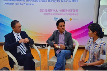 王院长还特别强调,癌症是吞噬生命的恶魔,但癌症也可防可治。在这场斗争中,医生和科研人员有义务积极投身于技术研发与临床总结,也更需要媒体传播防癌治癌的理念、树立患者抗击癌症病魔的信心。真诚地期望与菲律宾媒体能携手合作,为菲律宾民众的健康做出积极的贡献。