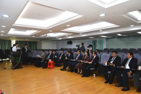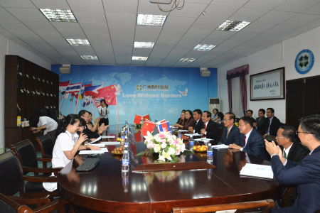 上午8点20分,代表团抵达广州圣丹福医院。在院领导的陪同下,代表团于医院行政楼2楼多功能会议室观看广州圣丹福医院品牌形象片,同时与广州圣丹福医院展开双方会谈。会上,院长王怀忠代表广州圣丹福医院向柬埔寨卫生部代表团表示热烈欢迎,并重点介绍了广州圣丹福医院及驻柬埔寨金边办事处肿瘤事业发展的相关情况。