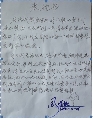 来自8楼患者周道敏的感谢信