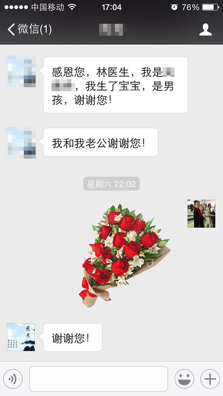 能怀上一个健康的宝宝是大部分女性的期望,广州圣丹福医院妇科林三明主任妙手回春,多次为由于输卵管阻塞等原因导致不能生育的女性做手术。患者术后都能成功拥有属于自己的孩子,也均有给林主任报喜并表示感谢。