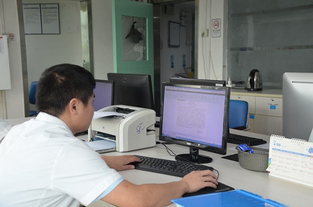 吴伟医生在认真填写病例
