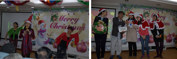 此外,当天晚上,(中新合资)广州圣丹福医院还为住院患者们举办了一场医患同乐的圣诞party!晚会一开始,“圣诞老人”便背着沉甸甸的口袋给现场观众分发糖果,随后,来自越南、泰国的患者家属分别与翻译登台献唱,翻译蒙律子再次吹奏葫芦丝,国际门诊医生曹春主任翩翩起舞,更有护工阿姨表演手语和基督教圣歌;晚会还插入抽奖环节,10位现场观众成为了幸运儿,抱着大奖高兴而归……
