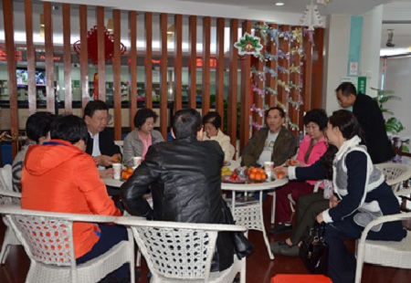 医院院长王怀忠等领导在咖啡吧接待三姐
