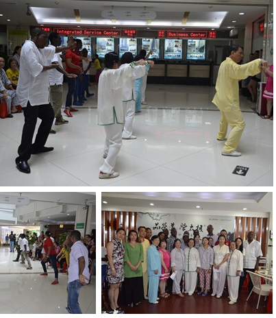 在“中外文化交流会”第二环节,医院邀请的太极名师则为到场的外国朋友普及了中国太极拳知识,并和大家进行了太极拳的表演互动。