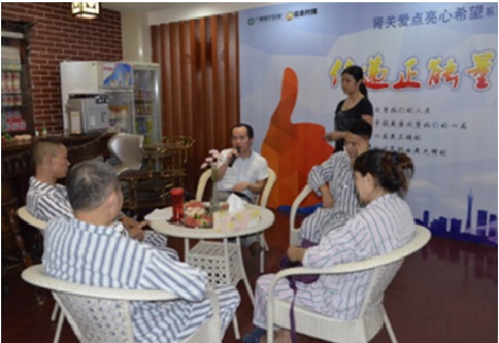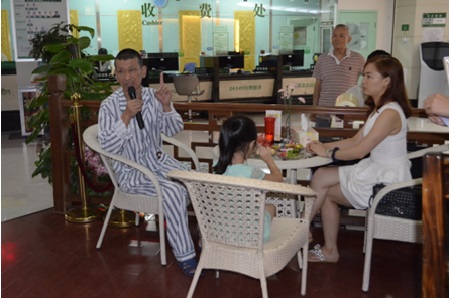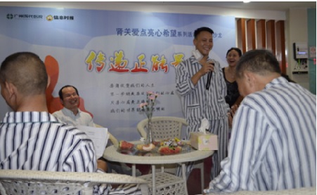 “不知道是因为你们这边的机器先进些,还是环境好些,透析效果好多了,精神也恢复得很快!”25岁的叶姓帅哥皮肤白皙,面容清秀,如果没有病号服和脖子上的纱布,很难看出这是一位尿毒症患者。几个月前他在别的医院确诊为尿毒症,当时的他面色晦暗、十分孱弱。来到广州圣丹福医院后,经过三个月多的透析,身体恢复了许多,“而且身边这些肾友,也不断地开解我,让我放宽心。”说到这里时叶帅哥声音有些激动,“现在我就想着快点把病情控制住,为了老婆和她肚子里的孩子,我要好好活!”身边的肾友们听到他的分享,都给他以掌声,并坐到他身边,与他分享自己的治疗历程,鼓励他坚持下去。