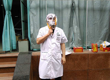 消防安全重要的是要学会消防器材的使用。每一位参加考核的员工都要熟悉掌握灭火器、防烟面罩的使用。广州圣丹福医院的院长、老教授、专家也纷纷上前操作,展现各自在消防救护方面的技能。