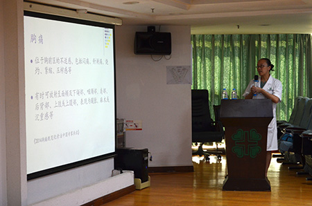 接着,质管科熊玉梅总监给与会人员详述了医院不良事件处理规程。熊玉梅总监介绍,不良事件包括:警讯事件、不良后果事件、未造成后果事件、隐患事件等。