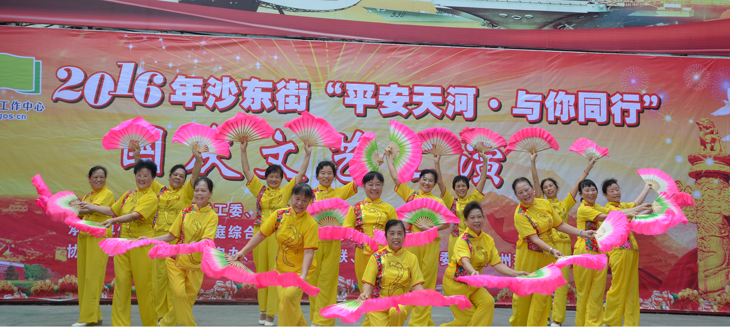 9月27日上午,“平安天河,与你同行”喜迎祖国母亲67周年华诞文艺汇演在沙东街双拥文化广场隆重举行。活动由沙东街道党工委、沙东街道办事处主办,沙东街家庭综合服务中心、沙东街文化站共同承办。