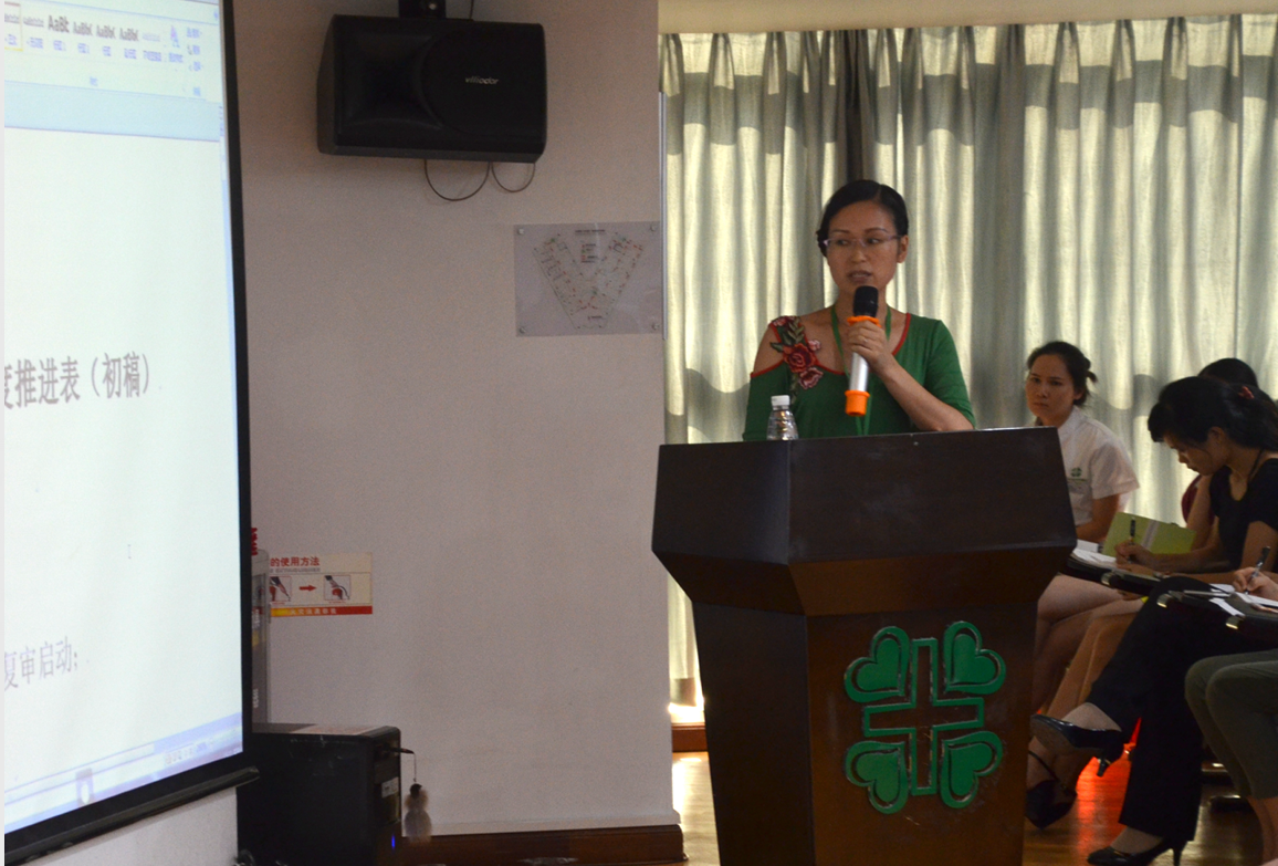 下午2点30分,动员大会正式开始,首先,质管科熊玉梅主任讲解《广州圣丹福医院迎接JCI复审工作计划》,涵盖医疗、护理、感控、环境安全等各个方面。为了能有效保障计划的顺利进行,熊玉梅主任推出三点重要举措,分别是: 落实JCI相关章节负责人及其成员,组建JCI知识读书会,系统开展全院员工管理工具培训。