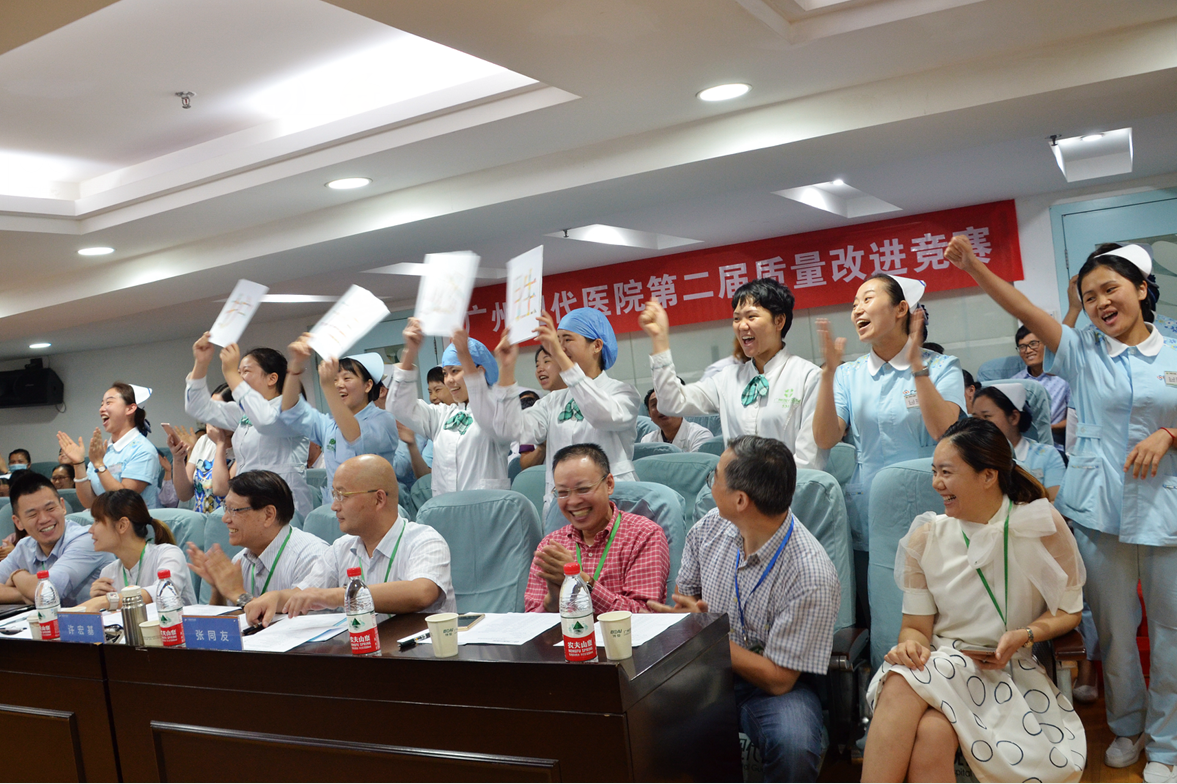 据悉,19支参赛队伍分别来自临床、护理、感控、客服、行政后勤等各个科室部门,在赛场上将各自自2015年年底至今一整年的质量改进过程以及成果展现出来。比赛精彩纷呈,选手们各出奇招,现场拉拉队也十分给力,气氛热烈非凡。