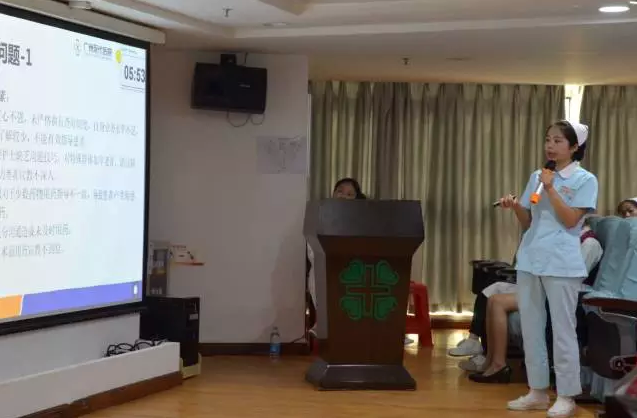 肿瘤四病区护士长李琴汇报了《提高口服药按时服用率》的项目成果。她刚上场时,病区的患者和护士自发组织的拉拉队举着牌子高呼:“琴姐加油,琴姐你最棒!”赢得现场掌声不绝。