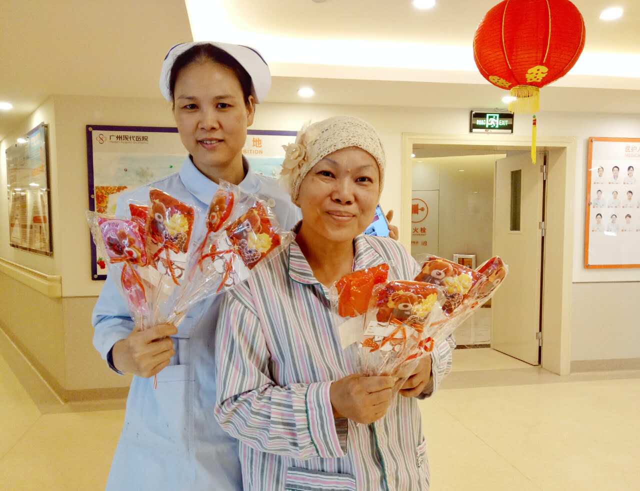 走进广州圣丹福肿瘤医院我们了解到,原来这是一个来自菲律宾患者高女士的儿子所送。高女士是一名胃癌患者,今年76岁,2016年11月到医院治疗,自住院以来,医院医护人员对高女士关怀备至,她从菲律宾不远千万里来到中国治病,为了消除她对陌生环境的不安感,翻译和护士时常到她的病床陪她聊天,医生也每天对她关怀慰问。目前她在医院得到了很好的照顾和治疗,高女士的儿子为了感谢医院医护人员,特别在情人节这天准备了礼物,送到了每一个美女手上。
