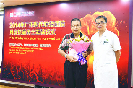 在颁奖仪式上,工作人员先后播放了七楼病区印尼籍非霍奇金淋巴瘤患者苏姚诺先生和五楼病区印尼籍胰头癌双肺转移患者吴其强先生的采访视频,并邀请他们轮流上台分享自己的抗癌经历。在近3个多月的抗癌过程中,他们一直积极面对癌魔,配合治疗,为表彰他们的乐观心态与非凡毅力,我院特授予他们“七月抗癌勇士”称号,副院长陈兵还分别为他们颁发了抗癌勇士荣誉证书和奖杯,并赠送每人一份高级营养品。许多闻讯前来学习和交流抗癌经验的外籍患者及家属纷纷表示抗癌勇士的事迹就是一种正能量,给了他们直面癌魔的勇气和力量。