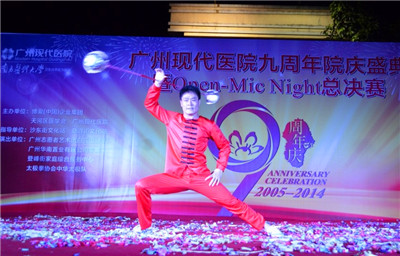 接到广州圣丹福医院九周年院庆晚会节目组的邀请,许多表演嘉宾纷纷第一时间响应。曾在亚残会闭幕式有过精彩演出的中华太极队演绎了极富中国传统民族特色的《陈式太极拳》,广州华南置业有限公司的阿姨们表演了拿手好戏东北秧歌《小看戏》,还有专业演艺公司演员秀出了高难度杂技……一大批精彩绝伦的节目引得台下观众直呼过瘾,掌声不断。