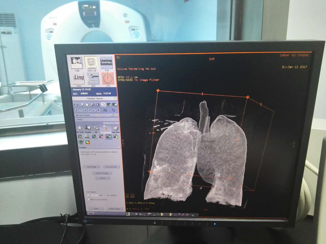 医生在操作新的CT设备