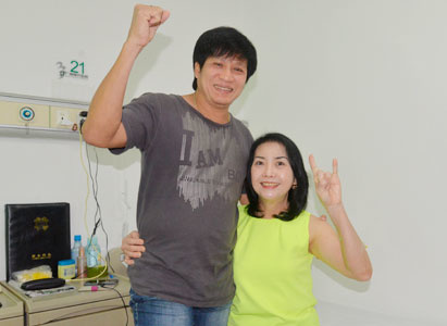 手术成功地清除了肿瘤和被侵犯的组织,术后,杨淑蓉开始做介入疗法。因为配合了轻微的静脉化疗,她的头发开始掉,终全部掉光。丈夫很快察觉到杨淑蓉爱美的心情,先后买回5顶假发。这5顶假发陪伴了杨淑蓉差不多半年时间,直到2013年12月治疗结束,她已经长出一层浓密的乌发,再也不需要假发的修饰。
