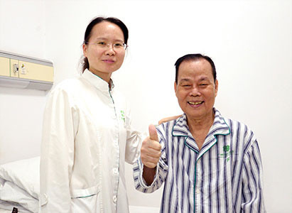 PSA指标下降,CT检查未见转移,黄育敬对治疗效果非常满意。他说自己在医院治疗的3年期间,亲自目睹了一些癌 症患者的治疗效果,他自己的治疗效果也是很好,所以他是非常信任广州圣丹福肿瘤医院的。“我曾经给彭晓赤主任 写过一段话:我在广州,广州有一座白云山,白云山下有一个广州圣丹福肿瘤医院。我有今天,是因为广州圣丹福肿瘤 医院带给了我第二次生命,”黄育敬感动地说,“我希望医院保持发展,在成功的路上继续迈进。”
