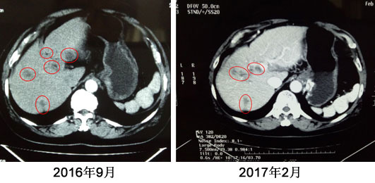平静安稳的日子过了5年,2014年陈先生感觉肝部有些疼痛,去医院检查后发现肝癌复发了,且已恶化到4期。为了避免再经历化疗的痛苦,陈先生积极寻找别的治疗方法。2014年至2015年底,他辗转中国和马来西亚尝试多种治疗,但效果很不好,在槟城检查时发现肝部的肿瘤已经有6.3cm了。